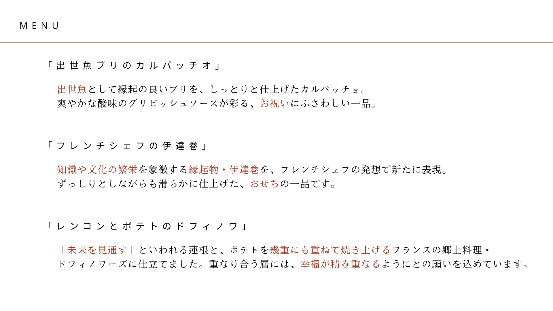 縁起のよい干支ラベル「祝い酒2本セット」とフレンチおせち 「岐阜から」三輪酒造 と フランス料理レストランオーエセルが異色のコラボが新春を彩る 新年を祝うとともに、新しい1年の幸せを祈る『干支ラベル』の日本酒。 日本酒はお料理を引き立てるので、フレンチとのペアリングはフランスでも近年注目されています。